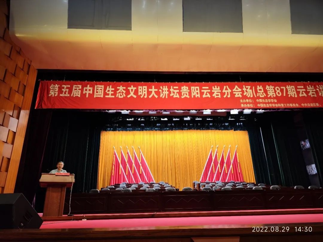 2022年8月29日下午,在“第二十一届中国生态学大会”刚刚落幕之际,由中国生态学学会主办,中国生态学学会科普工作委员会、中共云岩区委、云岩区人民政府共同承办的“第五届中国生态文明大讲坛贵阳云岩分会场”在贵州省贵阳市云岩区行政中心主会场进行。
