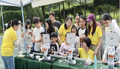 10月25日,在华南师范大学生命科学学院黄胜琴老师的指导下,广东省肖小亮名教师工作室参与的中国生态文明科普行活动在东莞市植物园举行。团队通过社区服务的形式,带领广大市民透过显微镜,开启一场跨越植物、动物与微生物世界的探索之旅,揭开生物多样性动人的秘密。希望微观寻宝之旅,让人们读懂生物多样性的深刻意义,增强对自然的敬畏之心,凝集推动生态文明建设的点滴力量。