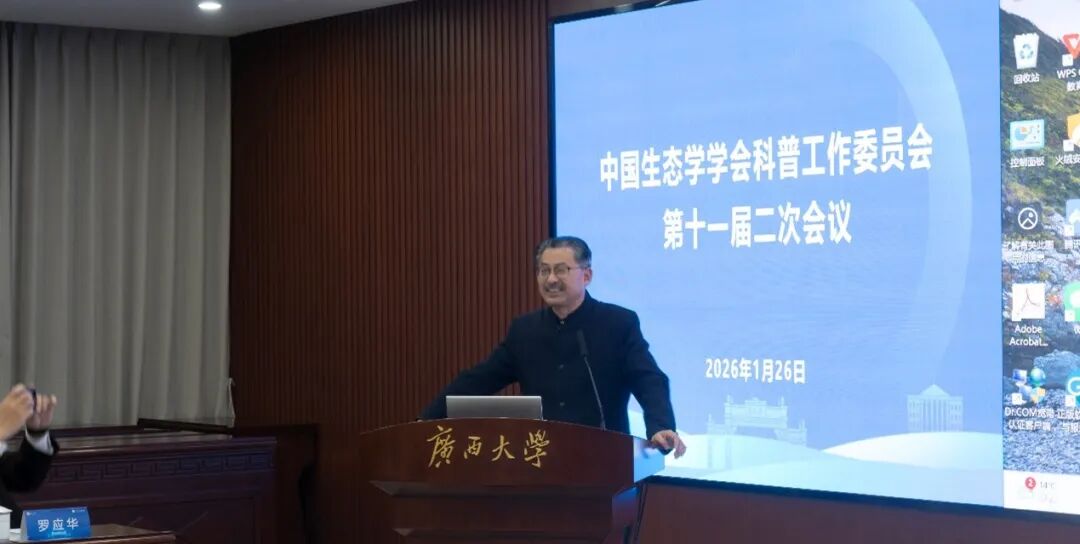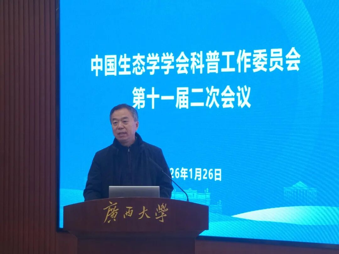 2026年1月25-28日,中国生态学学会科普工作委员会第十一届二次会议在广西南宁召开?;嵋橛芍泄аЩ峥破展ぷ魑被嵊牍阄魃аЩ峁餐靼?,广西大学林学院承办。