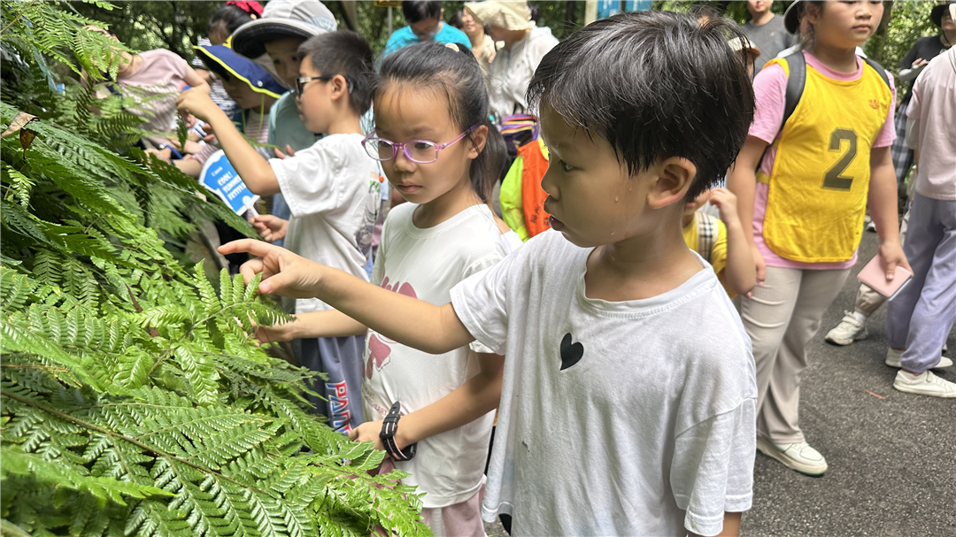 发布时间:2025-08-27 点击量:2898月16日上午,柳州市莲花山?;ぶ行淖橹目破障蛭蠢础疤矫剞Ю嗤豕?,感受自然奥秘”自然科普研学活动在三门江国家森林公园开展,25位小朋友在广西林业科学研究院高级工程师、植物分类专家蒋日红博士的带领下,认识古老而智慧的蕨类植物。在蒋日红博士的指导下,孩子们在公园的蕨类科普墙前不仅仔细观察了二歧鹿角蕨、深绿卷柏、欧洲凤尾蕨、疣茎乌毛蕨等蕨类植物,还亲手触摸了蕨类叶子背后密密麻麻的孢子?!八逆咦邮糠浅6啵嫦吕吹纳?,多生少活就是它的繁殖策略。”蒋博士边说边拿起一片蕨叶展示,别看蕨类植物沉默低调不张扬,它们可不是等闲之辈,蒋博士举例道:“孢子弹射给航母上飞机弹射带来灵感、蕨类植物最高一片叶子可