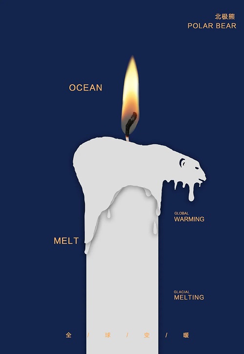 发布时间:2022-05-25 点击量:414作品用蜡烛与北极熊、海豚、鲸鱼的形象结合,表达全球变暖对动物的伤害。