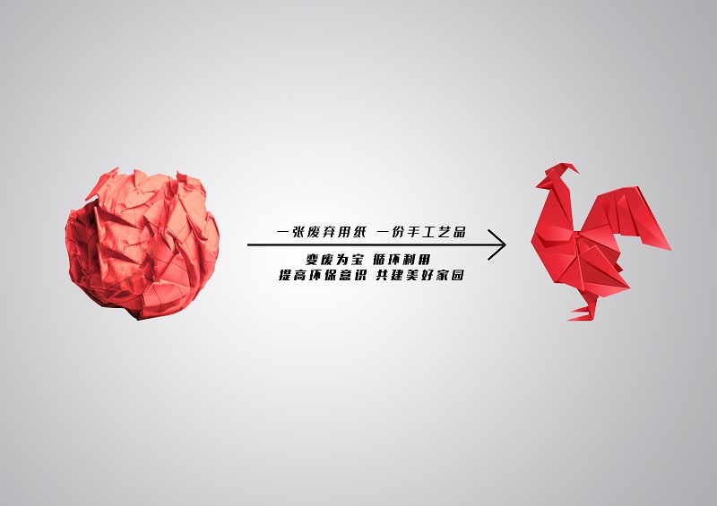 发布时间:2022-05-25 点击量:974作品用“废弃纸团”和“手工艺品”形成了鲜明对比,生活中工作和学习浪费了很多的纸张,处理方式就是一扔了之,变成垃圾,但是我们可以换一种思维,把他们做成一份工艺品,让它们换一种方式存在,以此来提示我们大家生活中很多垃圾都是可以这么做的,提倡环保,建设我们美丽家园。
