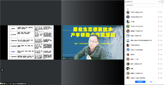 发布时间:2022-12-25 点击量:66311月23日,为加强生态专业与产业的紧密对接,推动“会-校院-企”的协同创新,提升生态环保企业创新能力和产学研用黏合力,原位生态修复技术产学研融合交流活动顺利召开。来自众多高校、研究院所和相关企事业的160多名代表以线上方式参与活动。活动开幕式上,广东省生态学会理事长、暨南大学段舜山教授,广州市生态学学会会长、华南农业大学冯远娇副研究员分别进行致辞发言。 在主题交流环节,华南农业大学资源环境学院崔理华教授作了“城市河流黑臭水体及养殖池塘尾水生态治理技术进展”的报告;广东工业大学黄飞副教授作